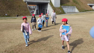 1年生が、生活科の学習で、校庭にある「秋」をさがしました。