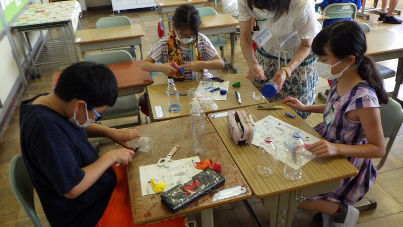 今日は,3回目のクラブ活動がありました。子供たちは,異学年の児童同士で協力しながら,共通の興味・関心を追求する探求活動に,楽しそうに取り組んでいました。各クラブの活動を紹介します。科学クラブは,空気鉄砲づくりを通して,空気の収縮や膨張について楽しく学びました。スポーツクラブは,プールで水中バスケットを行い,みんな全力でゴールをめざしていました。手芸・調理クラブは,感染症に気を付けながら自分たちで考えたスペシャルデザートづくりに取り組みました。パソコンクラブは,ボランティアの影山さんのご指導を受けながら,オリジナルの名刺づくりに取り組みました。イラストクラブは,自分の好きなキャラクターを選び,上手にイラストを描いていました。
