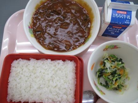 麦入りご飯,牛乳,ハヤシライス,ゆで野菜(香味玉ねぎドレッシング)