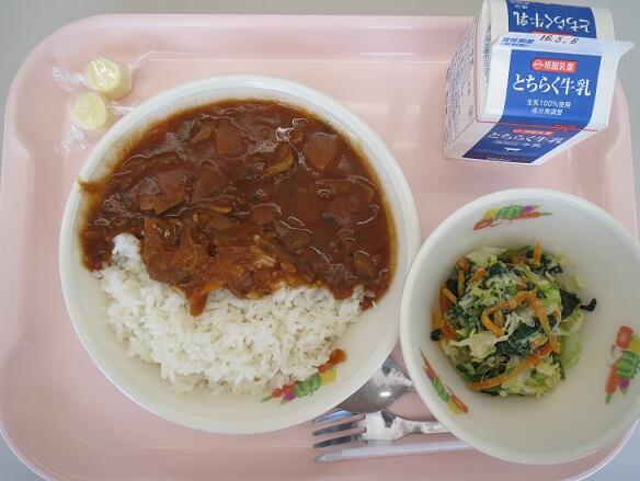 麦入りご飯,牛乳,ハヤシライス,ゆで野菜,チーズ