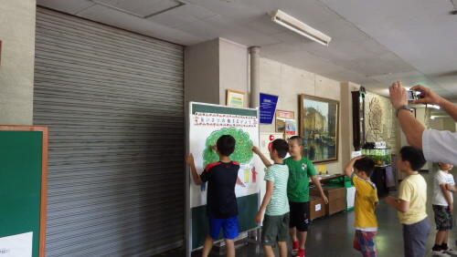 登校時間に1週間あいさつキャンペーンを行いました。代表委員の児童が中心となり,あいさつの輪を広げようと正門,南門,昇降口に分かれて大きな声であいさつを呼びかけました。中央小のあいさつの輪がどんどん広がり,あいさつの木が完成しました。