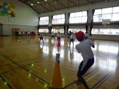 【2年生の体育の授業に遭遇。ソーシャルディスタンスを確保しながら子供たちが大好きなリレー形式の運動をしていました。大声援が校長室まで聞こえてきました。】