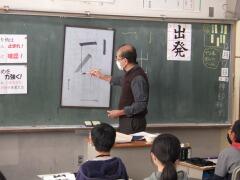 今年度,書写ボランティアとしてお世話になっているコミセンの板垣博史さんに,今日は5年生が教わりました。お題は「出発」止めやはらいなどのポイントについて詳しく教えていただき,個別にアドバイスもいただきました。