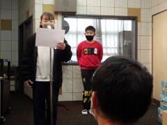 業間活動の時間に,体育館で関係児童たちを集めて表彰朝会を行いました。