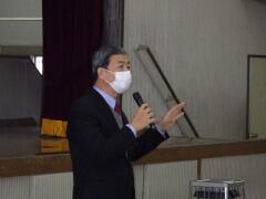 子供たちが興味を引く数学に関する2つの問題をもとに,「数学は,考え方を考える教科,考え抜くことが大切である」ことや「そのために,その土台となる計算する力をしっかりと養ってほしい」ことなどについて,興味深く教えていただきました。