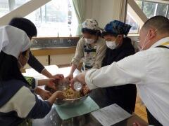 【青木社長さんから秘伝の味噌造りを伝授】 【手順1:麹と塩をよく混ぜる】