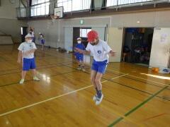 【長縄跳びをしながら中で短縄を跳ぶという高度な技に挑戦中】  《12/8(火)  3校時撮影》