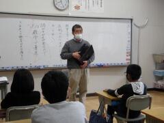 【5年2組の読み聞かせの様子・宇津木副校長先生】