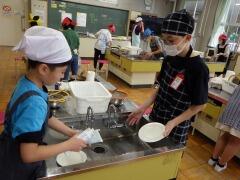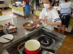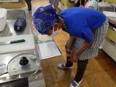 コロナ対策として,1つの調理台の人数を減らし2人で使用する,布巾は使わずキッチンペーパーを使用する,試食中会話はしない,などの対策を講じて,安全を確保しながら実施しました。