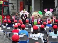 【あいさつキャンペーン初日は,飼育・栽培委員会の子供たちでした】