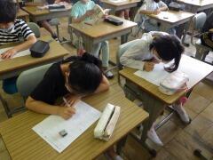 【テスト開始前,担任の説明を聞き,緊張しながら注意書きを読む6年生。緊張感が伝わってきます。】