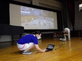 タブレットとプロジェクターを駆使して,運動会の表現運動の指導に当たっていました。大画面を見ながら子供たちの理解度も向上し,先生方も指導に専念できるようです。GIGAスクール時代の新たな運動会練習の形ですね。