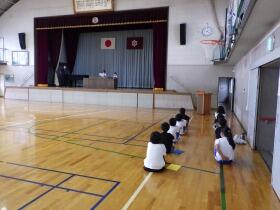 【体育館では,終業式・始業式の代表児童リハーサル中】 【児童会室では,代表委員会による運動会シンボルマーク決め】