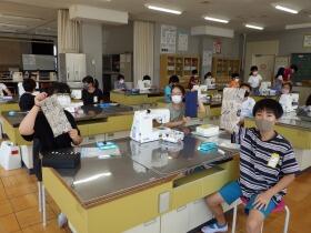 【家庭:手提げ袋を制作中。ミシンで縫った後の糸の始末の仕方を学んでいました。完成まであとわずかです!】 《10/21 (木) 2校時撮影》