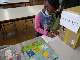 【1年生に優しく教えている6年生の図書委員】 【図書室は連日子供たちであふれています!】