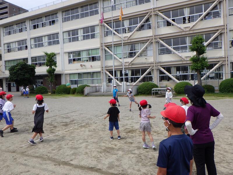 ロング昼休みの時間を利用して,今年度最初の「縦割り班での共遊び」を行いました。この活動は,1年生から6年生まで縦割り班をつくり,班ごとに考えた楽しい遊びを行うものです。今日の活動では,へびおにやドッジボールなど1年生でも楽しめる遊びを高学年生が考え,楽しそうに実施することができました。異学年生が交流しながら活動することは,子供たちの社会性を身に付ける上でとても重要です。さらに,「楽しい学校づくり」のためにも非常に有効な取組です。児童数171名という本校の強みを生かし,これからも「縦割り班活動」の充実をめざしていきたいと考えています。