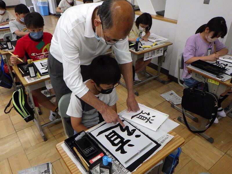 次に,書写ボランティアの紹介です。5,6年生の書写の時間には板垣さんが授業に参加し,教員と連携・協力しながら指導にあたってくれています。板垣先生の丁寧なご指導のおかげで,子供たちはみるみる上達し,書写が大好きになりました。