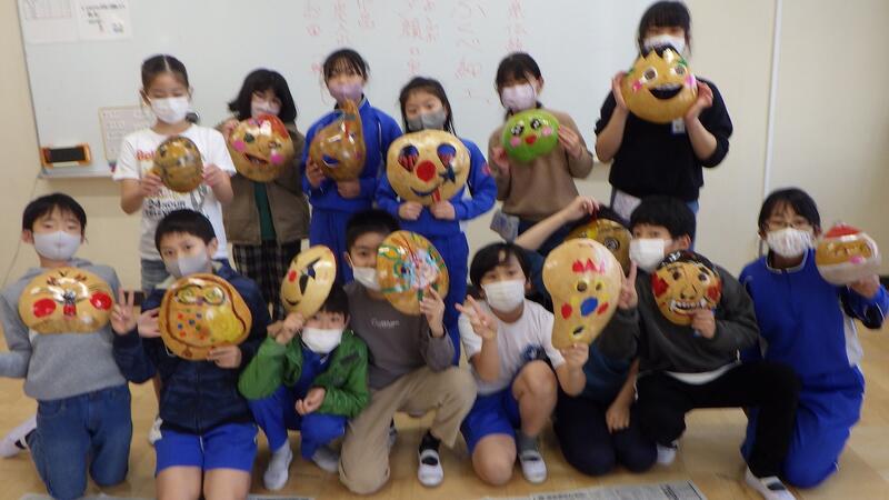 4年生が宮っ子伝統文化教室で「ふくべ工芸」を体験しました。2名の講師の先生にご指導をいただきながら,子供たちはアイディアに富んだふくべ細工を制作することができました。ふくべとは夕顔の実のことで,栃木県の特産品のかんぴょうです。ふくべの形を活かして,墨入れや花器,小物入れなどに加工され利用されるほか,表面に色鮮やかに絵付けされた人形や伝説の百目鬼(どうめき)をもとにした魔除けの面などが土産品として有名です。