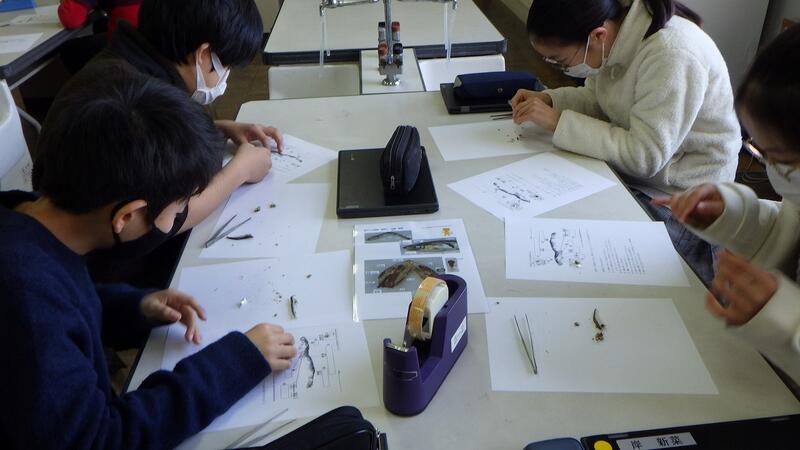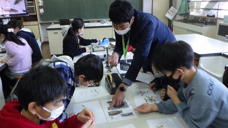 小中一貫教育事業として,中学校の教員が小学校で乗り入れ授業を行いました。乗り入れ授業は宇都宮市全体で実施している事業であり,中学校教員が小学生に授業を行うことで,小・中学校の連携を強化したり,相互理解を深めたりすることをねらいとしています。今回は,6年生が理科の解剖の授業を体験し,魚の体のつくりについて詳しく学習しました。子供たちは,先生の専門的な説明を聞きながら,魚(煮干し)の解剖に意欲的に取り組んでいました。心臓や肝臓,腸など体のつくりを興味深く観察していました。そして,中学校で学習する期待を高めていました。
