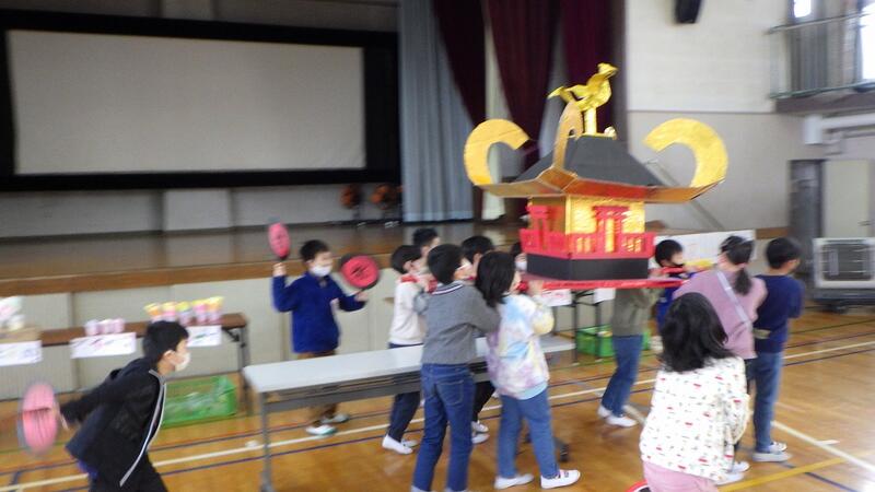 今日は1,2年生が「ザウルスキッズ祭り」を行いました。自分たちでお店を考え,お店で売る品物を友達と協力して制作するなど,自分たちで計画を立て,友達と協力しながら準備を進めました。また,みんなが楽しめる「お祭り」になるようプログラムなども工夫しました。そして,いよいよザウルスキッズ祭り当日。開会セレモニーの後,2年生の元気のいいおみこしで祭りがスタートしました。子供たちは,友達や招待したお客さんに楽しんでもらおうと一生懸命活動していました。