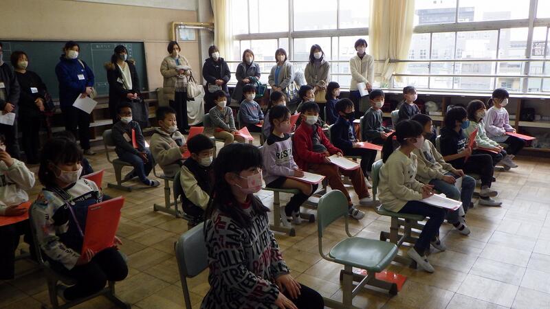 書写ボランティアとして1年間お世話になった板垣先生に,子供たちから心のこもった感謝状がおくられました。先生には5,6年生が書写の時間にお世話になりました。専門的な観点から丁寧にご指導をいただいたおかげで,子供たちはみるみる上達することができました。そして,伸び伸びとした作品を表現することができるようになりました。