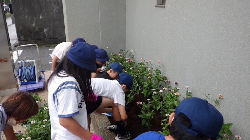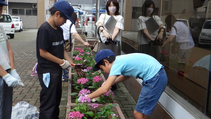 5年生が宇都宮市花と緑のまちづくり推進協議会主催の「まちなか花壇」活動に参加しました。この活動の目的は,中心市街地の一層の緑空間を創出するため,企業・地権者と協力し,花壇を設置することで,景観の向上と緑化意識の醸成を図ることです。子供たちは,大好きな中央地区がもっときれいで,住みやすい街になるよう,一生懸命花壇づくりの活動に取り組みました。