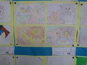 【図工「みんなのお話 始まるよ」オリジナルストーリーを4コマの絵で表現しました。】