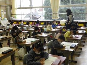 毎年6年生を対象に全市一斉に実施している「学習内容定着度調査」が,本日行われました。6年生の教室では,午前中をかけて4教科のテストに取り組んでおり,張り詰めた空気が流れていました。