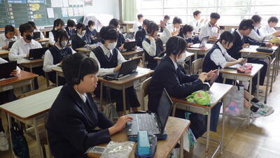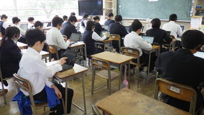 2年生はクロムブックを使っての回答のため、難しさも感じましたが、何とか無事に終わりました。