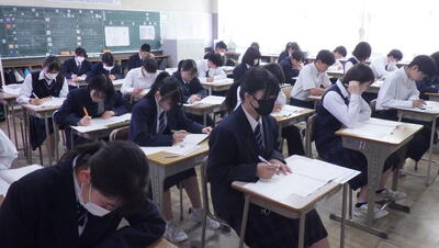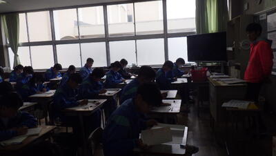 4/20(月)5・6校時に、全国学力・学習状況調査の英語(読むこと・書くこと)(聞くこと)(生徒質問調査)が行われました。
