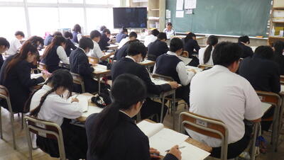 教科担当教諭とは今年度、初顔合わせでしたが、どのクラスも顔をしっかり上げ、先生の話を聞く姿が見られました。
