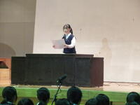 式の中では、各学年代表生徒による意見発表がありました。