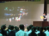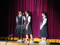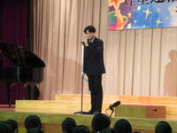 午前はまず、各種発表(少年の主張、英語スピーチ、広島平和親善大使体験)の発表が行われました。