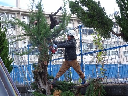 ※造園業者の仕事は「作業,手順,片付け」など,全てにおいて無駄がなく繋がっていて「プロはこうやるんだ!」という姿勢が後ろ姿から伝わりました。学校職員も「教育のプロ」として同じ土俵では比べられませんが,必要以上にロスな時間,ロスな作業はないか,意識しなくてはなりません。勉強になります。