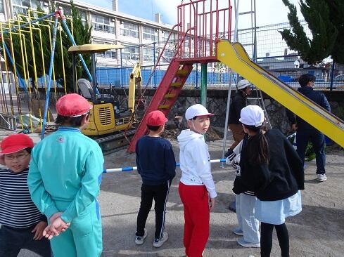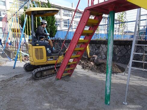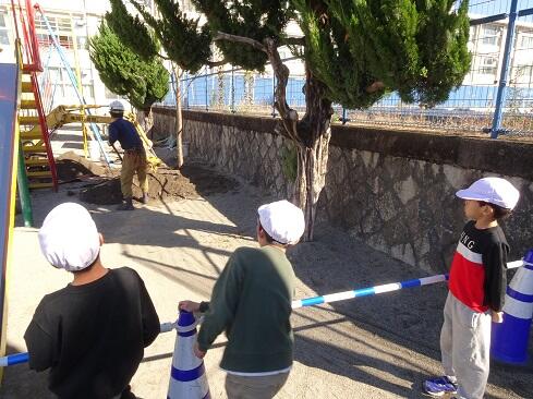 11月11日(火),明日の桜植樹に向けた準備作業が実施されました。令和5年度に本校最後の桜の木が,安全配慮上伐採され,「卒業シーズン」や「入学シーズン」に桜がないのは寂しいということしで,簗瀬小学校同窓会が植樹に向けて全面的にお力添えくださいました。まずもって感謝申し上げます。また,PTA亀田会長様にも様々な調整に御尽力いただきました。無事に植樹までたどり着きましたこと,感謝申し上げます。11日は前準備ということで,植樹のスペースを確保しました。本校は,現在の子供の家が建っている場所が桜の木のスペースでした。今はスペースはありません。では,南側は?桜の木がありましたが,60年ものの根は,広がり過ぎていて伐根は大工事になるとのこと。それではということで,子供たちが集いやすく各学級からも近くに見られる場所ということで,専門家のアドバイスもあり,プール近くに決定しました。12日は,午前中から作業をしています。水曜日はロング昼休みなので,子供たちもゆっくり見学できることと思います。同窓会に感謝! ~他校のように,桜の花びら越しに校舎の写真を撮ってみたいです。~