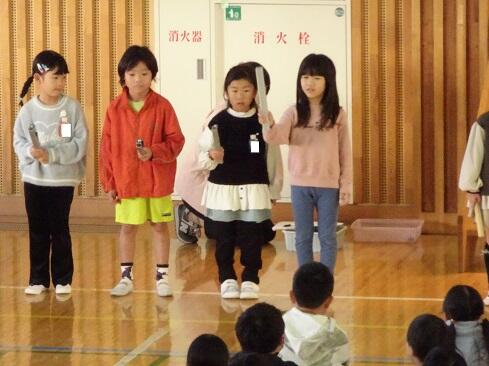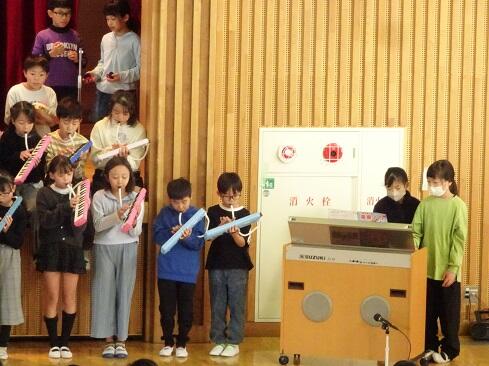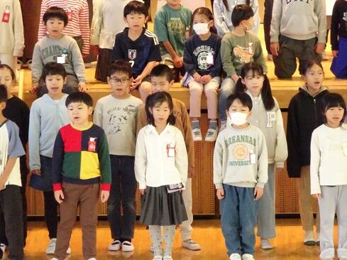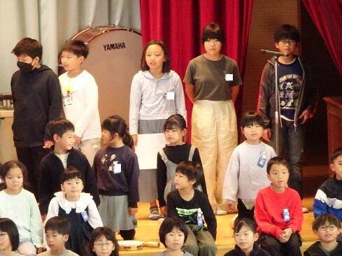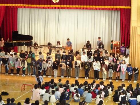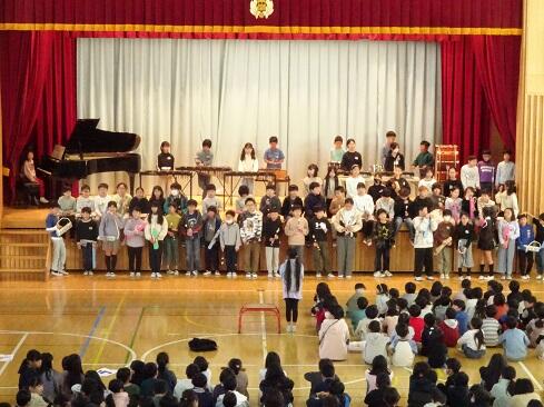 11月4日(火),朝の活動の時間を活用して,音楽発表会を開催しました。今回の発表は,1年生と4年生です。それぞれ学年の発表のほか,2学年合同でも1曲披露しました。子供たちの感想です。「頑張った。」「緊張した。」「拍手をもらってうれしかった。」「緊張したけれども,練習を頑張ったのでうまくできたと思う。」「家でも練習した。頑張ってよかった。」などです。頑張った結果が本番でうまく表現でき,そして,多くの人に賞賛してもらうことは,本校の教育活動で目指している「子供たちの自己肯定感の更なる高揚」につながります。御家族の皆様には,早朝のお忙しい時間から参観に駆けつけてくださいましてありがとうございました。感謝
