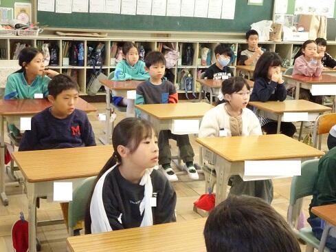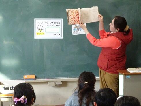 11月27日(木),読み聞かせボランティア「ら・ぶっく」の活動日です。今回の対象は,1年生から3年生です。いつものように「立腰タイム」の後にお楽しみの時間です。ボランティアの皆さんはそれぞれ,今の子供たちに伝えたいこと,考えてほしいことをテーマにして読み聞かせの本を選んでくださっています。時宜をとらえ,子供たちに寄り添って考えてくださり,感謝いたします。ら・ぶっくの皆さん,今日もありがとうございました。