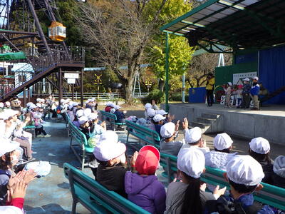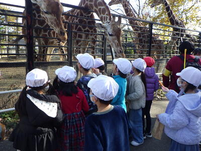 11月20日(木),宇都宮動物園へ校外学習に行きました。まず遊園地で班別活動に挑戦しました。友達に順番を譲ったり,はぐれないように声をかけたりして活動しました。次に,クラスごとに動物園をまわります。「えさやりOK」の表示を確認しながら,えさやりにも挑戦しました。おいしいお弁当を食べた後は,「わんわんチャレンジ」を見ました。拍手や掛け声でショーを盛り上げました。最後は,班ごとにもう一度見たい動物を見に行くことができました。遊園地や動物園で班別活動をする中で、「まずどの乗り物に乗る?」「次はどの動物を見に行く?」と、みんなで話し合って決めることができました。意見が違うときでも、譲り合ったり、友達の気持ちを考えて行動したりすることができました。また,公共のマナーを実践してくることもできました。今回のような校外学習は,学年ごとに経験を重ねながら,最終的には,6年生での修学旅行へとすべて繋がっていきます。1年生諸君,お疲れさまでした。帰りのバスではぐっすりでしたね。