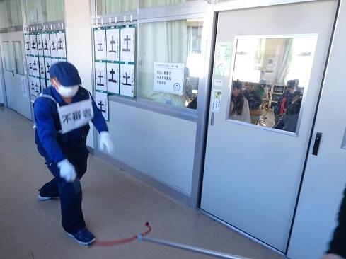 11月28日(金),避難訓練を実施しました。今回は不審者対応の訓練です。不審者役で御協力くださったのは,警察スクールサポーターの大坪正明さん,参観いだたのは本校スクールガードチーフの奥村俊夫さんです。さて,各クラスでは不審者の侵入を伝える放送内容を1回で正しくキャッチし,的確な避難行動(入口へのバリケード作り)がとれていました。そして,訓練は繰り返し実施することに意味があります。人の心は常に安定を図ろうとするため「自分は大丈夫」と思い込む,いわゆる「正常性バイアス」が働いてしまうからです。つまり,「自分は大丈夫,避難する必要はない。」という選択をしてしまうのです。そのため,訓練の時から本番のつもりで取り組むことで,避難への動きを体に染み込ませ,いざというときにパニックになることを避けるのです。避難訓練は命を守ることに直結する学習です。一方,職員側は,安全確保体制と共に,不審者への適切な対応が求められます。スクールサポーターさんの話では「一番は,学校から出て行ってもらうこと。確保ということは,先生方の命に危険が及んでしまう。先生方の命を守ることも大切です。」とのことでした。訓練後は,御協力くださったお二人に講評をいただきました。また,職員の不審者対応の研修も実施しました。寺田寅彦の言葉の「天災は忘れたころにくる」を心に留め置き,天災同様に不審者侵入についても同様に,常に「訓練は本番のつもりで」取り組みたものです。