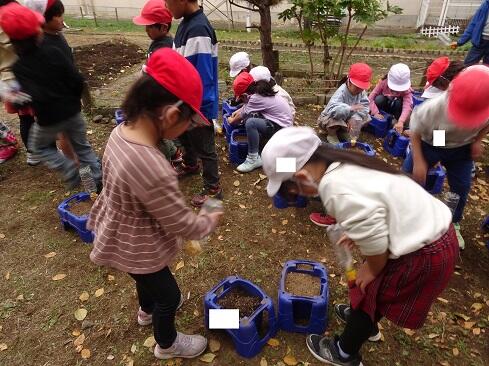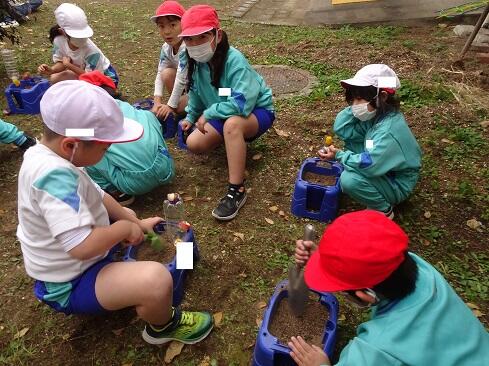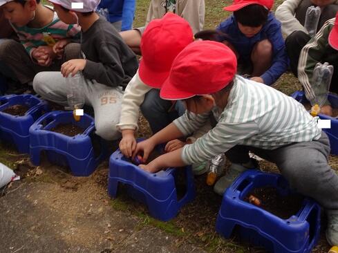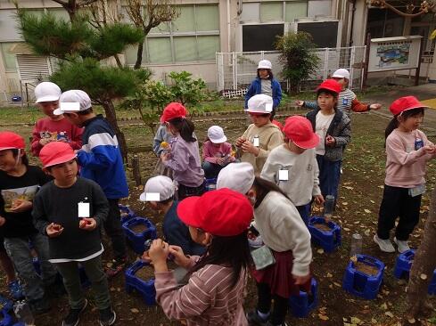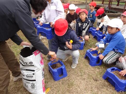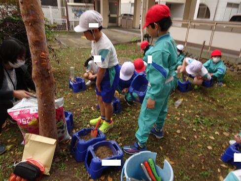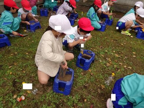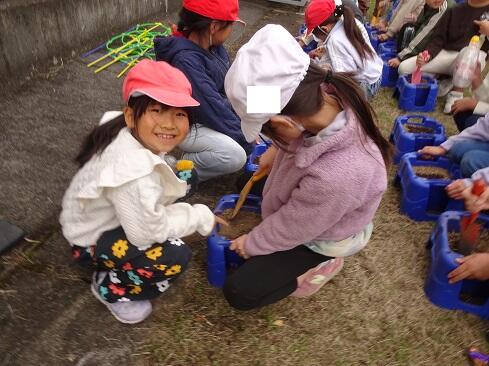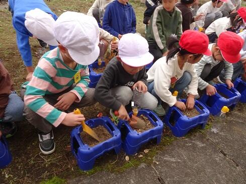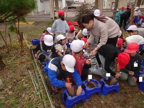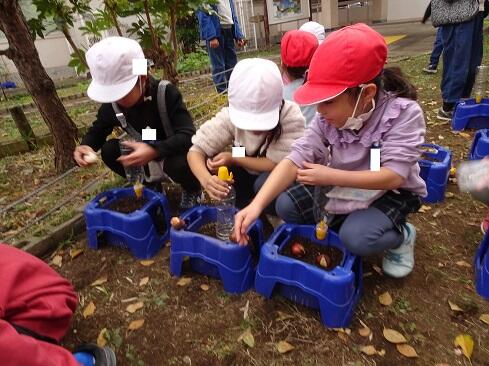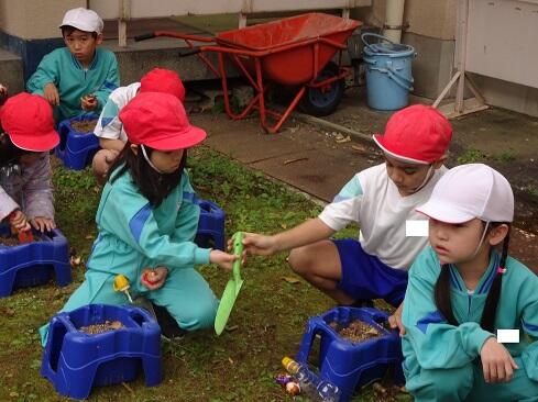 12月2日(火),1年生が生活科でチューリップの球根を植えました。「大きいたねですね?」「違います。これはね,球根です!」「そうなのですね。」1年生はこれまでアサガオを育てていました。これは,「種を植えて,双葉が出て,本葉が出てきて,つるがのびて,花が咲いて,そして種がたくさんできた。」の過程を学習しました。(アサガオはお水がプールの状態になってもたくましく成長してくれました。)さて,後半は,球根から育て,春ごろには花が咲きます。球根はたねが大きくなったものと思ってしまうかもしれませんが,生育するための養分を地下の肥大した根や茎や葉など,さまざまな部位に貯蔵するものの呼び名です。チューリップは花が咲き終わるとたねを作ります。そのたねをまくと発芽して茎葉は育つものの,開花まで何年もかかります。諸説ありますが,花が咲くまでになるには5年ほどかかるとか……。さて,1年生は今回も友達とかかわり,教えたり教えられたりしながら活動していました。人格の完成に向けた,小学校期に求められる取り組みができています。1年生には,チューリップを育てる過程そのものを楽しんでほしいと思います。