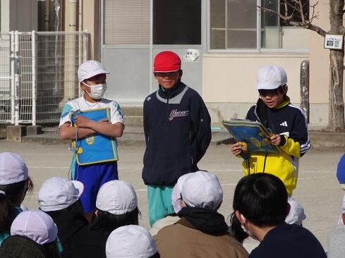 1月20日(火),朝の活動の時間を活用して音楽発表会を実施しました。市会担当は音楽クラブ。発表は3年生です。曲目は「レッツゴーソーレー」「ミッキーマウスマーチ」の2曲です。始まるまでは緊張した様子でしたが,自信をもって演奏することができていました。本番に強い子供たちです。さて,発表後は音楽クラブによる発表です。曲目は「ドラゴンクエスト」のオープニングテーマです。練習を重ねてきただけあって,お見事でした。御家族の皆様には,気温が低い時間帯にも関わらず多くの皆様に御参観いただきまして,ありがとうございました。感謝いたします。子供たちは,頑張った姿を見てもらうことが自信につながります。