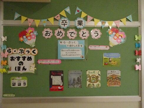 2月24日(火),図書掲示ボランティアさんが内容を更新してくださいました。ら・ぶっくも最終回を迎え,1年間の振り返りです。今年度児童一人当たりが借りた図書の本は,昨年度を上回りました。一役を担っていただいたボランティアさんに感謝です。