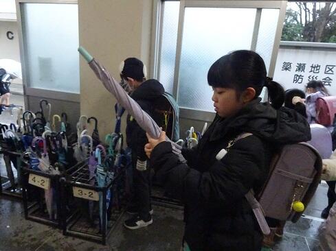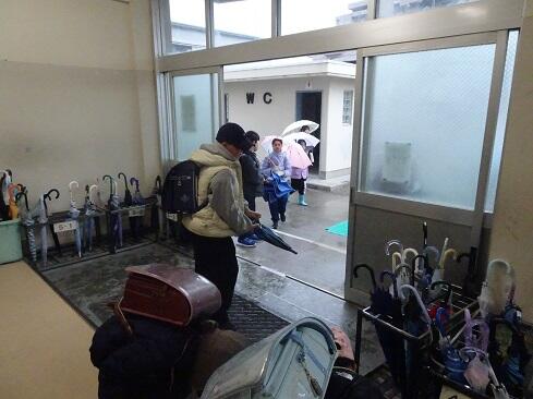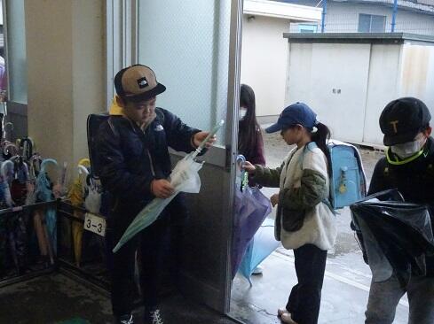 2月25日(水),毎週水曜日は児童会代表委員会による「スマイルあいさつデー」です。代表委員委は全員オリジナルのメッセージカードを掲げて取り組んでいますが,何人かは内容がバージョンアップしていました。これまで「大きな声で元気にあいさつ」だったのが,「ほどよい声の大きさあいさつ」にバージョンアップされていました。活動の振り返りから,単に大きな声がよいというものではなく,相手に伝わることか大切だと考えたそうです。「振り返りを次に生かす」お見事です。さて,外は久しぶりの雨。恒例,傘の閉じ率を見てみました。今回は,先生方のアドバイスもあり98.7%でした。もちろん,リカバリーして100%です。あわせて,くつ揃えも見てみると,傘が揃うクラスはくつも揃う傾向があり,互いに影響していることが感じられました。【かかとを縁にそろえて、真ん中に置きます】~よい習慣は,やがてよい人格の形成へと繋がっていきます~