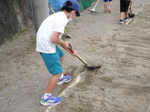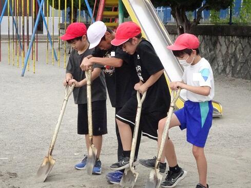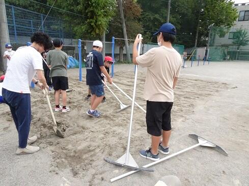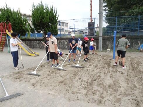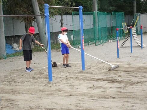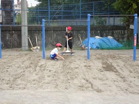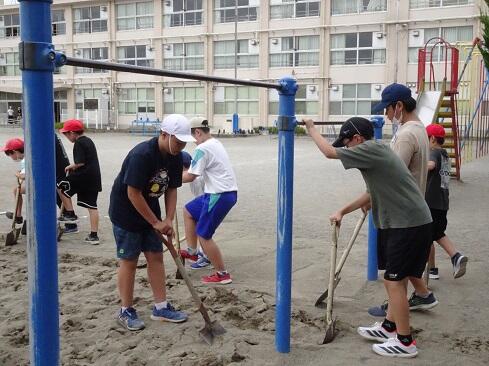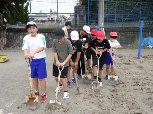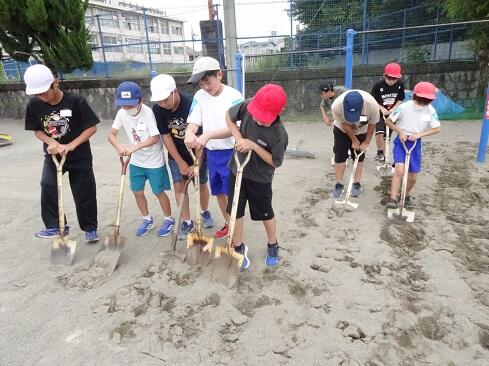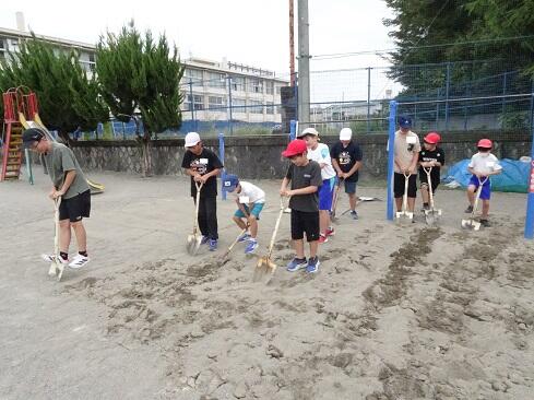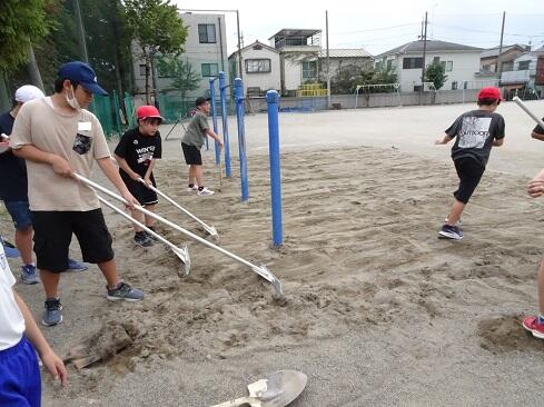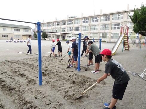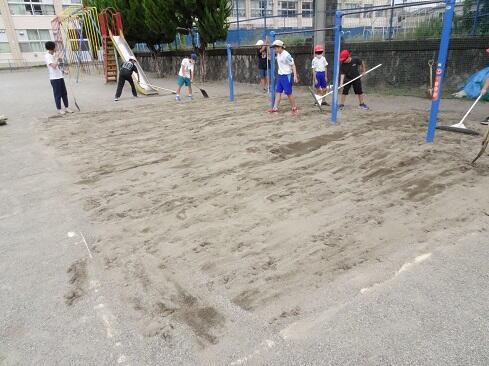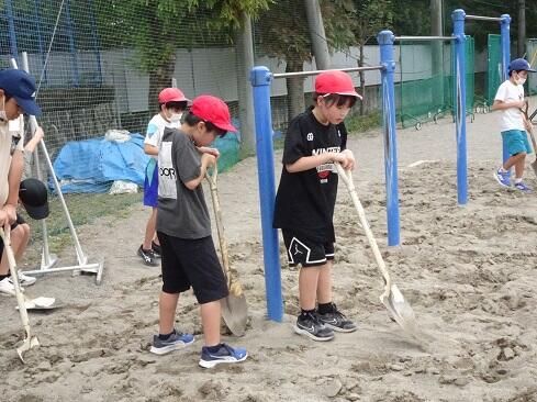 9月25日(木),ボランティアクラブが,クラブ活動の時間に砂場の掘り起こしを行いました。教科体育時の安全確保と陸上競技大会「走り幅跳び」の練習に先駆けての準備となります。メンバー全員で時間をかけて,砂場をフワフワの状態にしました。最後は砂の表面を均して,砂場の枠も見えるようにと丁寧に作業していました。本クラブは,学校のためにとか,みんなのためにという精神のもとに集まっています。活動の姿を見ていると,ひた向きさ,誠実さ,温かさ,そして心意気が伝わります。最後の仕上げに取り組む姿にはグッときました。簗瀬小学校は,子供たちに支えられています。まだまだ,教えていただくことはたくさんあります。敬服