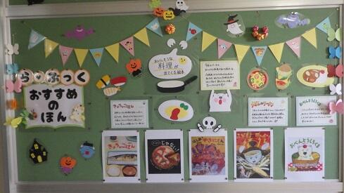 9月25日(木),秋本番に向けた図書の掲示が行われました。今回のテーマは,「おいしそうな料理が出てくる絵本」シリーズです。どの本も読んでいるうちにお腹が空いてきそうです。毎回,時間をかけて丁寧に作業をしてくださりありがとうございます。読書は心を豊かにしてくれます。子供たちも,大人もいつも楽しませていただいています。感謝