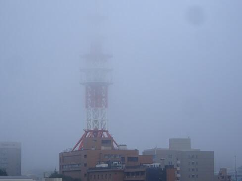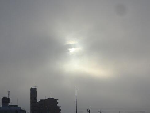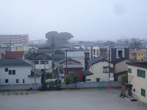 10月6日(月),朝霧です。御存知のとおり,この現象は,夜間に冷やされた地表付近の空気が冷えて飽和水蒸気が水滴になることで発生します。日差しが届いて気温が上がると解消されるため「朝霧は晴れ」ということわざのとおり,晴天の兆候となるでしょうか……。