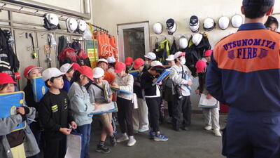 11月17日(月),3年生が校外学習を実施しました。今回は社会科の学習で消防局・宇都宮市中央消防署と大谷寺・大谷資料館に行ってきました。中央消防署では,関係車両の説明を聞いたり,通信指令室の見学をしたりしました。また,防火衣の着用体験もあり,消防士の方々の大変さを体感してきました。大谷では,日本最古の石仏「大谷観音」や,高さ27mの「平和観音」を見学しました。