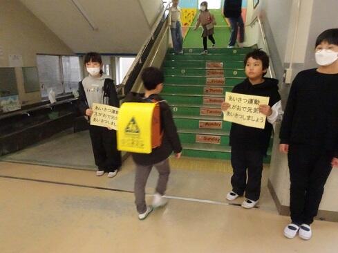 12月3日(水),毎週水曜日は児童会代表委員会によるあいさつ運動日「スマイルあいさつデー」です。活動後の代表委員の振り返りからです。「元気に挨拶をしてほしくて,みんなで大きな声で挨拶していたら『声が大きすぎる!』と言われてしまいました。」みんなに元気を届けたかったのですね。ありがとう。まず,自分たちで考えて,よいと思ったことを実行できたことはファインプレーです。ただ,室内ではボリュームが多きすぎたのかもしれませんね。次回に向けてリカバリーしてみてください。アイディアを加えずに取り組むより,ずっとすばらしいと思います。何でも,やってみなけりゃ分からない。続いて,「マスクをしていると,挨拶が返されたのかが分からないで困りました。」感染症が流行しているからマスクの友達が多くなっています。ただ,一人一人に確実に挨拶をしていた姿が見えてきます。誠実さは,必ず伝わります。次回もお願いいたします。代表委員が,よりよい学校にしようと熱心に取り組む姿が伝わってきた振り返りでした。みなさん,いつもありがとう。感謝