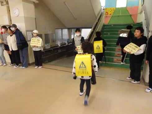 11月28日(金),避難訓練を実施しました。今回は不審者対応の訓練です。不審者役で御協力くださったのは,警察スクールサポーターの大坪正明さん,参観いだたのは本校スクールガードチーフの奥村俊夫さんです。さて,各クラスでは不審者の侵入を伝える放送内容を1回で正しくキャッチし,的確な避難行動(入口へのバリケード作り)がとれていました。そして,訓練は繰り返し実施することに意味があります。人の心は常に安定を図ろうとするため「自分は大丈夫」と思い込む,いわゆる「正常性バイアス」が働いてしまうからです。つまり,「自分は大丈夫,避難する必要はない。」という選択をしてしまうのです。そのため,訓練の時から本番のつもりで取り組むことで,避難への動きを体に染み込ませ,いざというときにパニックになることを避けるのです。避難訓練は命を守ることに直結する学習です。一方,職員側は,安全確保体制と共に,不審者への適切な対応が求められます。スクールサポーターさんの話では「一番は,学校から出て行ってもらうこと。確保ということは,先生方の命に危険が及んでしまう。先生方の命を守ることも大切です。」とのことでした。訓練後は,御協力くださったお二人に講評をいただきました。また,職員の不審者対応の研修も実施しました。寺田寅彦の言葉の「天災は忘れたころにくる」を心に留め置き,天災同様に不審者侵入についても同様に,常に「訓練は本番のつもりで」取り組みたものです。