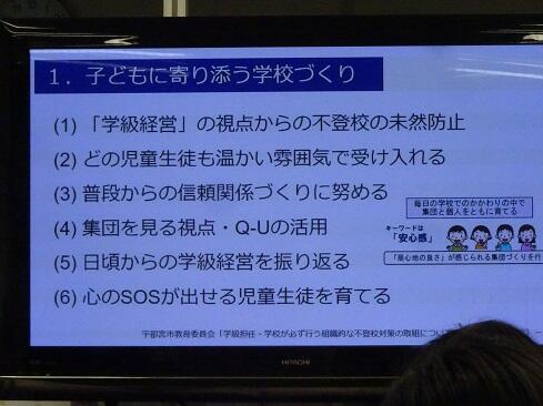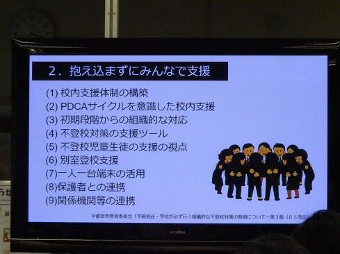 12月3日(水),文部科学省が問題行動等調査の結果を公表しました。これを受けて,本校では,今回「不登校」をテーマに研修に取り組みました。宇都宮市の状況から本校としての対策まで,グループに分かれて各自のこれまでの経験を共有したり,今後の対応策について発表したりして研修内容を深めました。引き続き,国や県の動きにアンテナ高く情報を収集し,その都度アップデートを図っていきたいと思います。